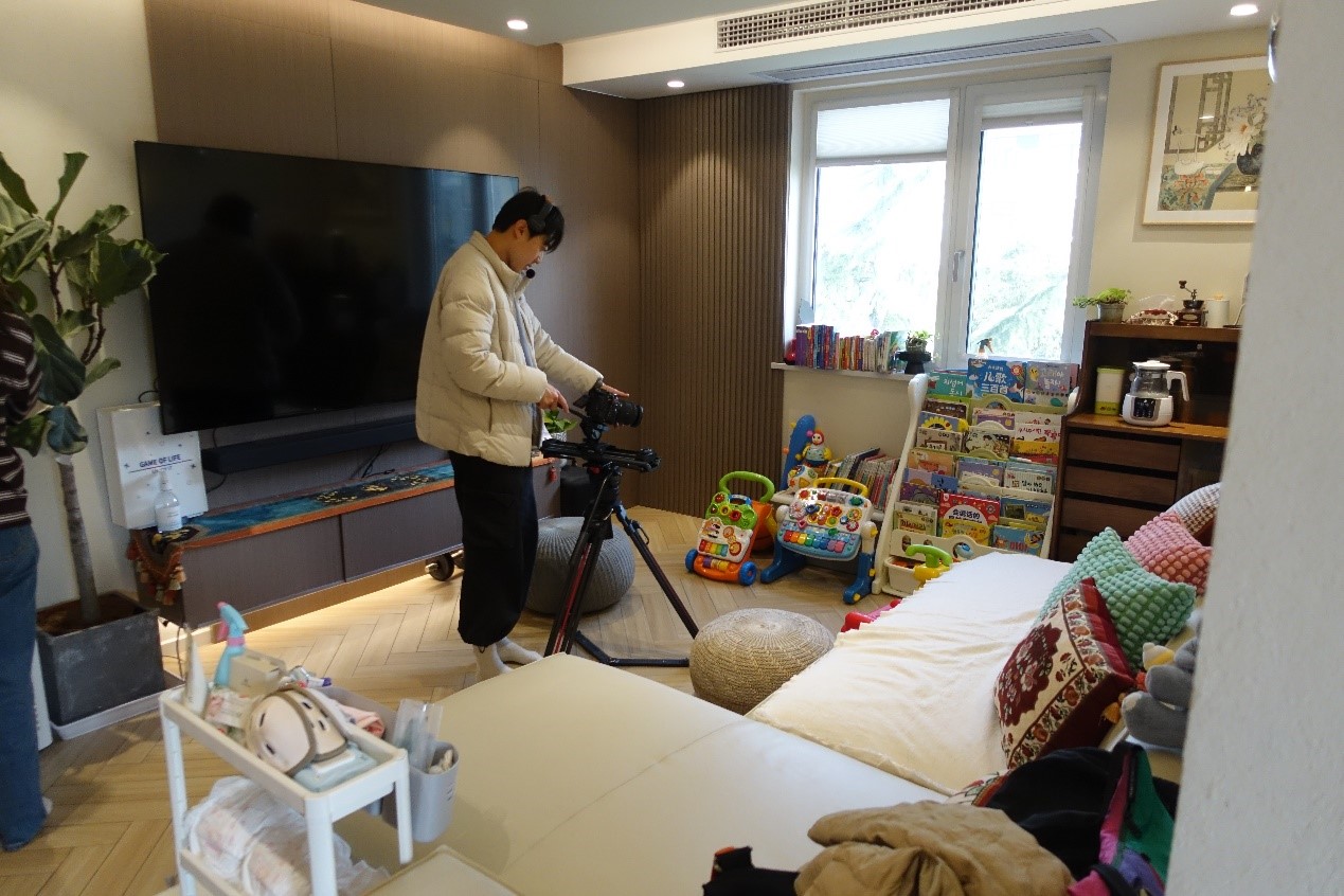 摄像师在居民家中拍摄