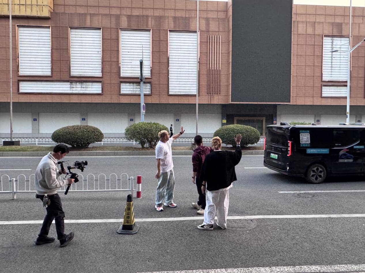 摄制组拍摄主持人试乘文远知行公司自动驾驶出租车后,与车辆挥手告别